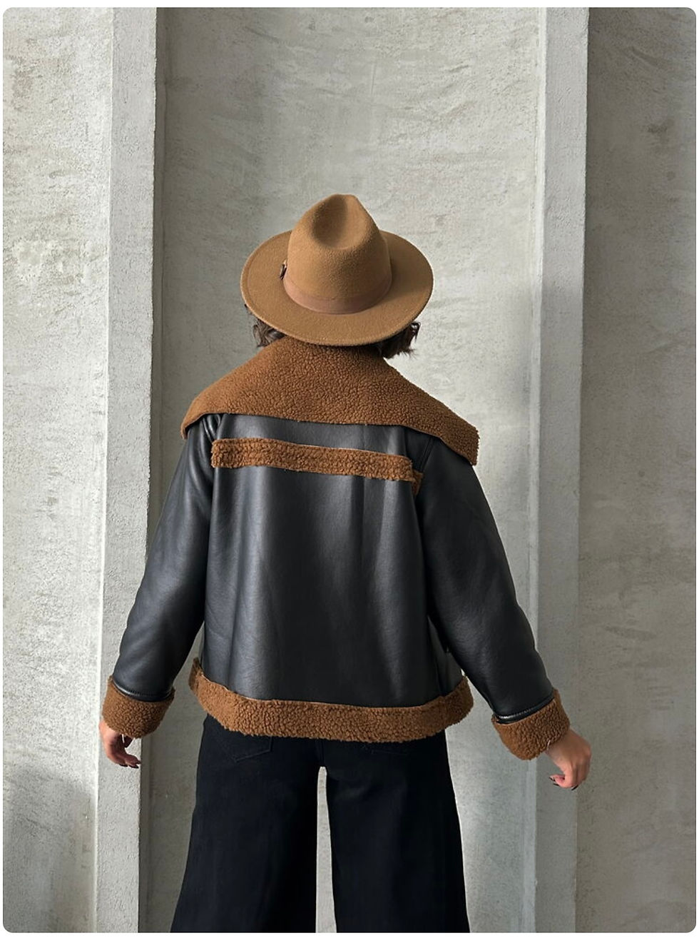 CCTWEAR Siyah Deri İçi Kürklü Mont